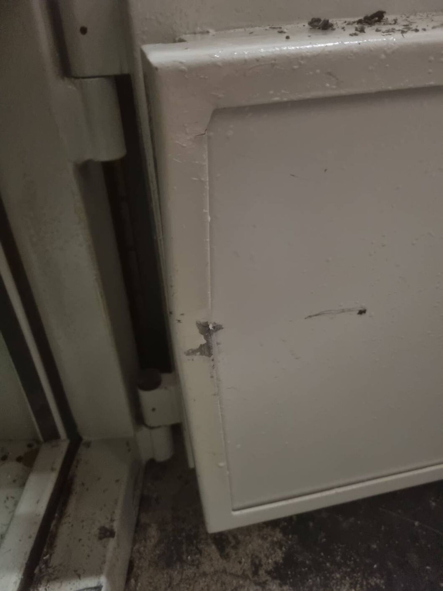 Le personnel du magasin a certainement forcé pour refermer la porte consécutivement à ce dommage accidentel.