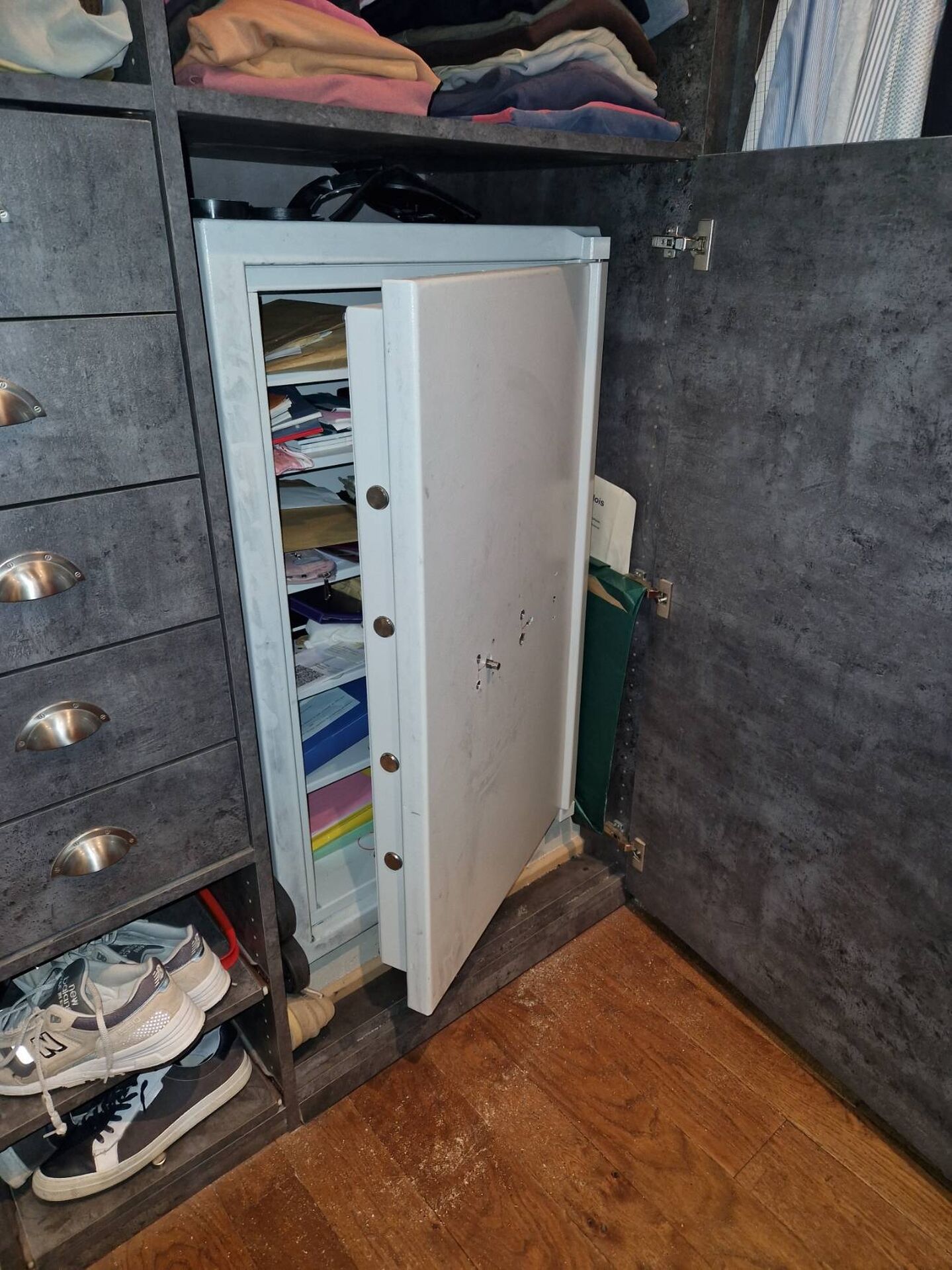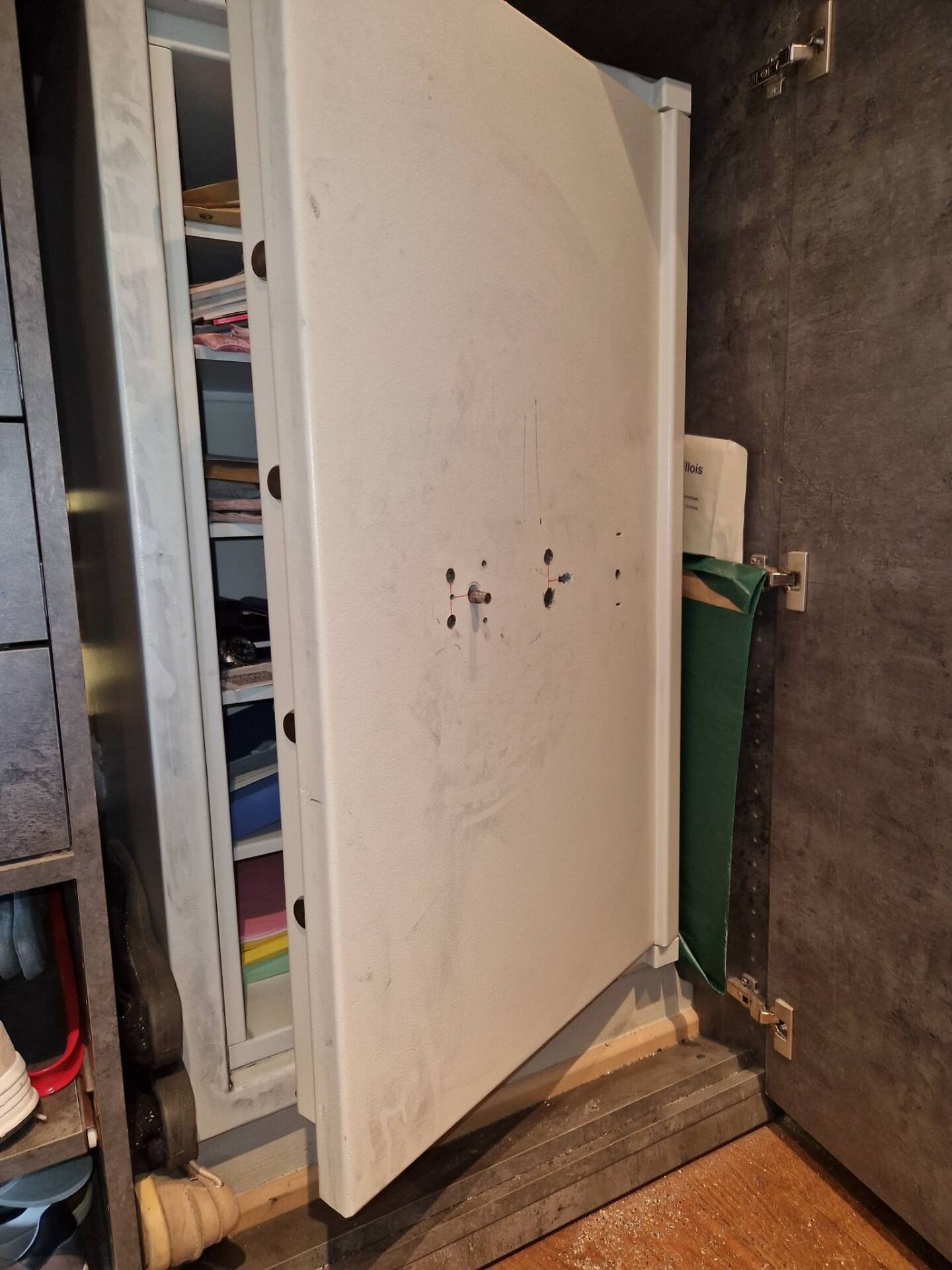 Sans parler du mur en contreplaqué cassé, pour attaquer le meuble de sécurité par l'arrière.